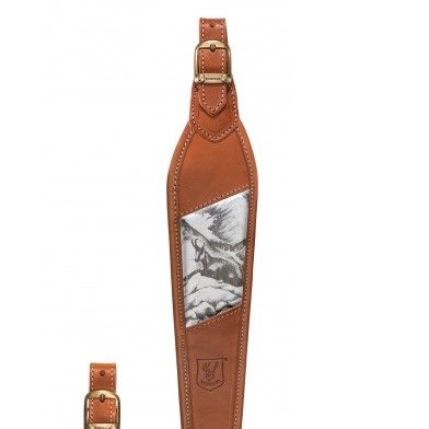 Tracolla per carabina regolabile in pelle,con parte posteriore antiscivolo in gomma che garantisce una perfetta aderenza alla spalla e ammortizza il peso dell'arma, attacchi regolabili in pelle, fibbie in metallo ottonato